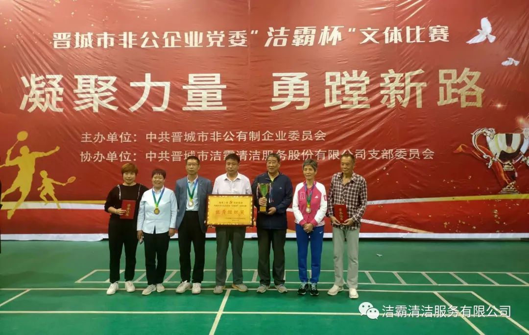 9月25日下午,晉城市非公企業(yè)黨委“潔霸杯”文體比賽落下帷幕。此次比賽由中共晉城市非公有制企業(yè)委員會主辦,中共晉城市潔霸清潔服務(wù)股份有限公司支部委員會冠名協(xié)辦。此次活動的主題是“凝聚力量 勇蹚新路”,旨在新中國成立71周年之際,全面展示非公企業(yè)黨組織開展群眾性體育活動的豐碩成果,以及廣大黨員干部創(chuàng)先爭優(yōu),奮發(fā)進取,勇蹚新路,爭做時代先鋒的精神風貌。