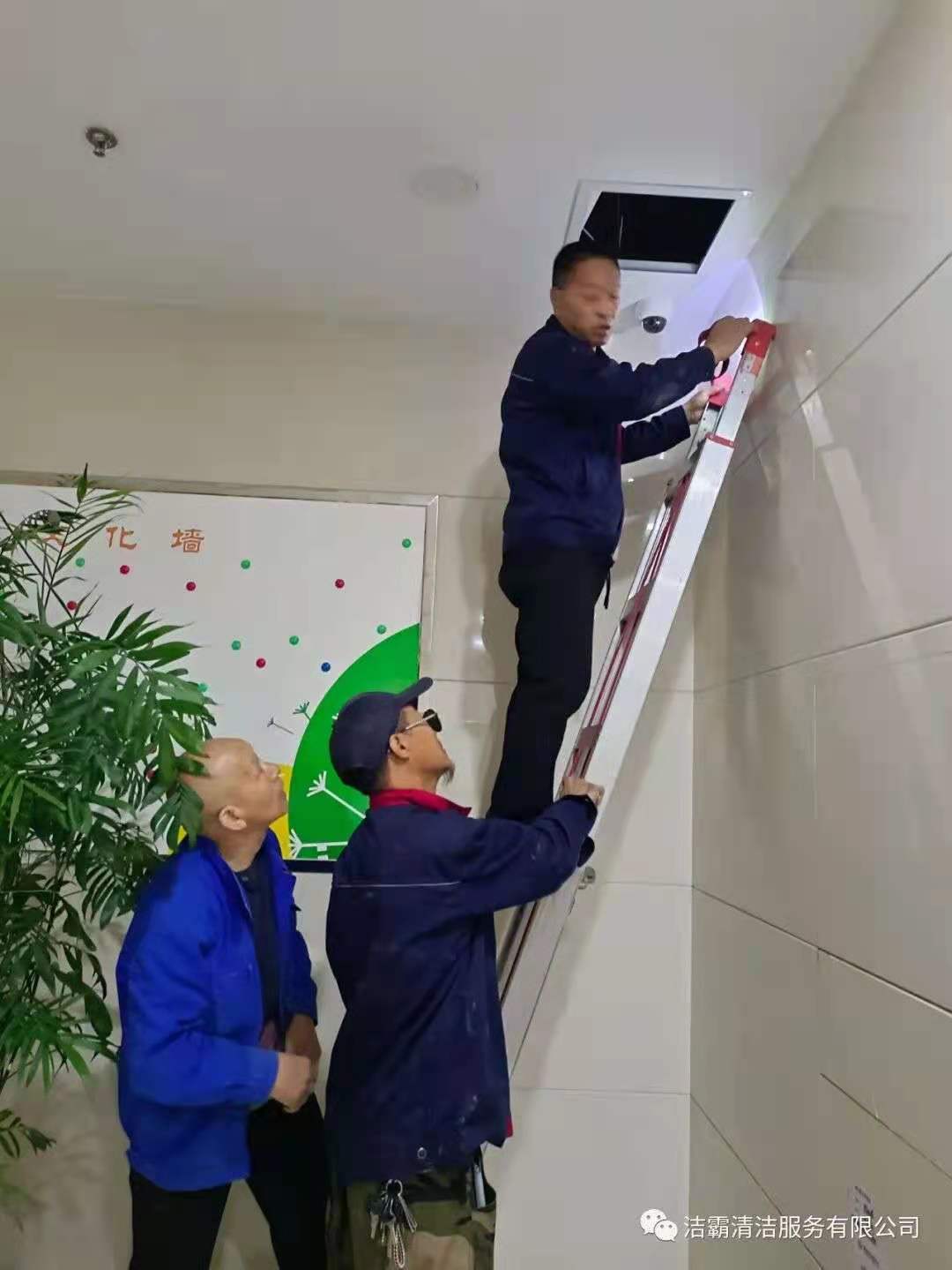 工程部的李新芳和郭軍田兩位師傅,有著豐富的工作經(jīng)驗(yàn),他們順著污水主管道,敲敲打打,根據(jù)聲音辨別堵塞部位。尋找病癥部位比較容易,但治療起來(lái)太艱難。管道在二樓與三樓之間,A單元樓下農(nóng)商銀行的天花板里。施工場(chǎng)地離地面四五米高,施工要爬高上梯且空間狹窄逼仄,天花板一處開(kāi)口勉強(qiáng)能容一個(gè)人鉆進(jìn)去,給施工造成很大困難。