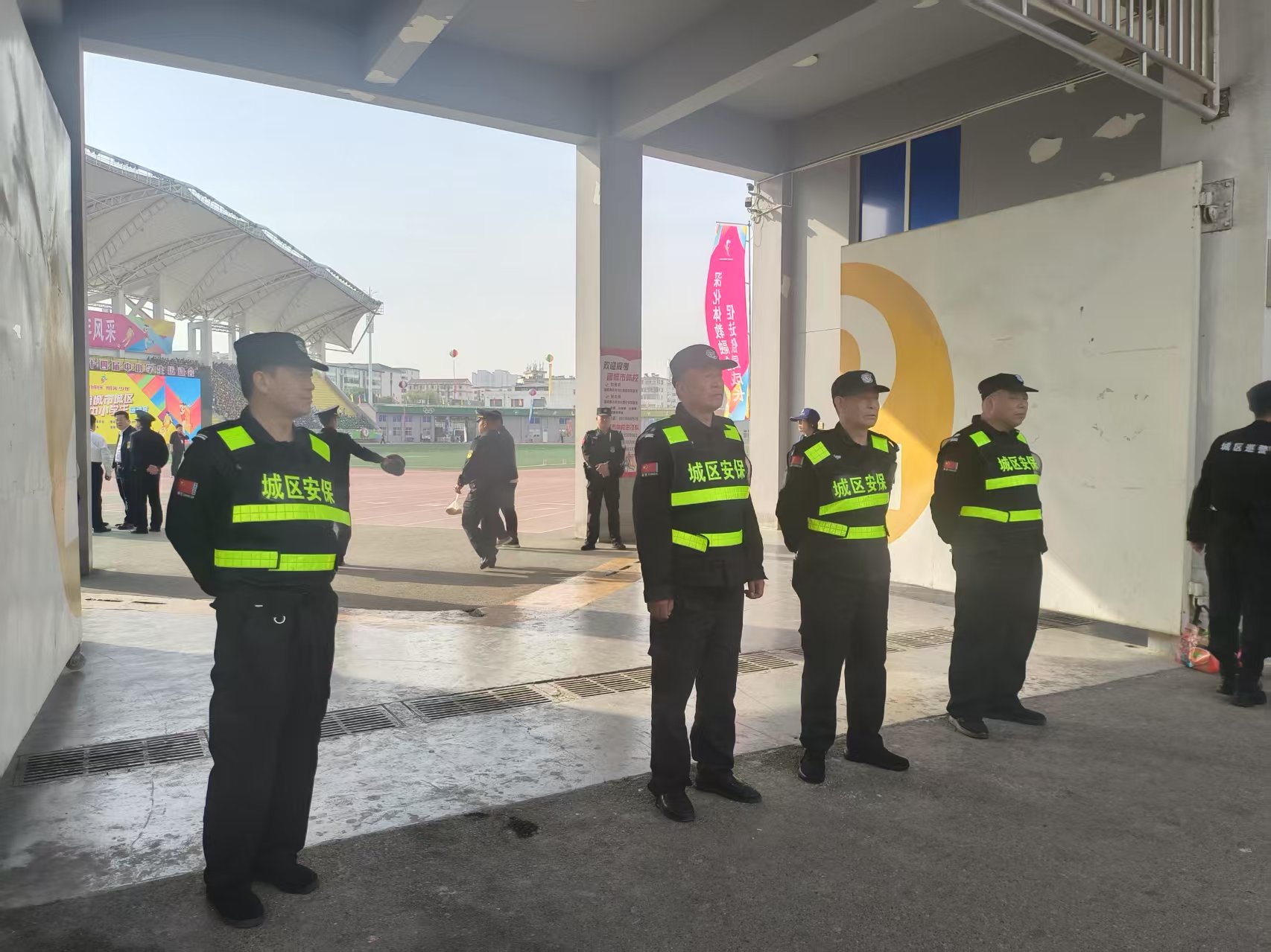 這場盛會規(guī)模宏大,來自城區(qū)42支代表隊的1300多名運動員、教練員、裁判員以及近兩萬名師生全程參加;交通疏導(dǎo)壓力大,140多輛公交車全力保障學(xué)生輸送;公安、交警、消防、救護(hù)等社會力量并肩上陣。保安公司160名安保人員全程參與了此次執(zhí)勤安保活動,承接了內(nèi)場、外場、的人員疏導(dǎo)和車輛調(diào)度等任務(wù),責(zé)任重大。