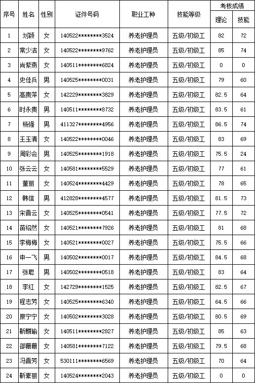 山西潔霸清潔服務集團股份有限公司職業(yè)技能等級認定中心現將2025年11月2日認定人員成績公示如下: